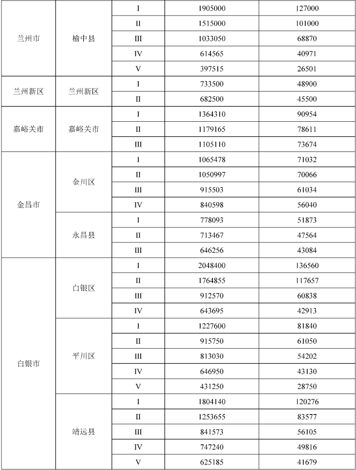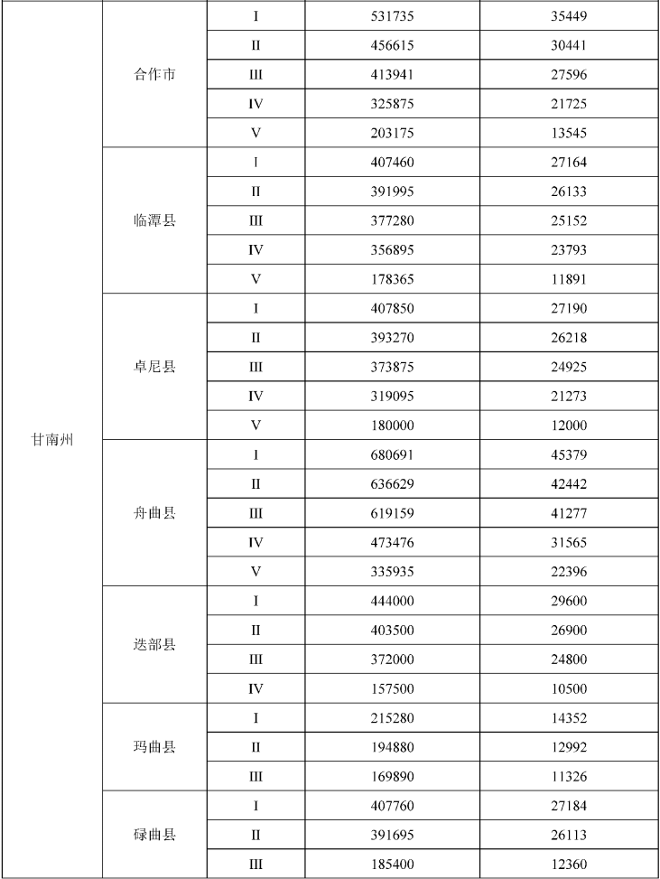 甘肃省征收农用地区片综合地价标准
