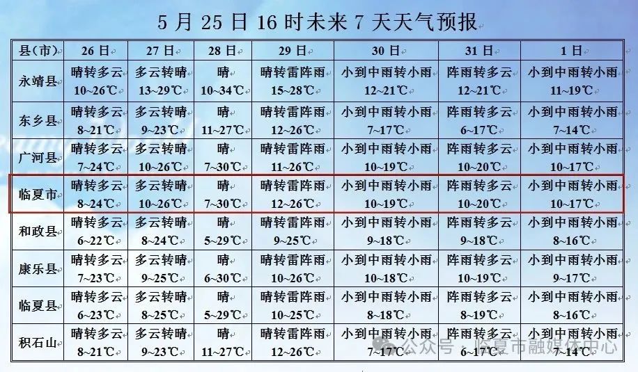 【临夏市未来七天天气预报】