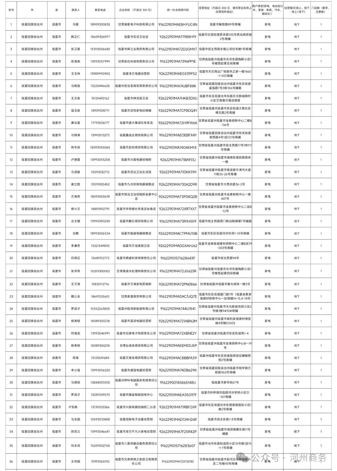临夏市消费品以旧换新补贴实施家电企业名录(第三批)