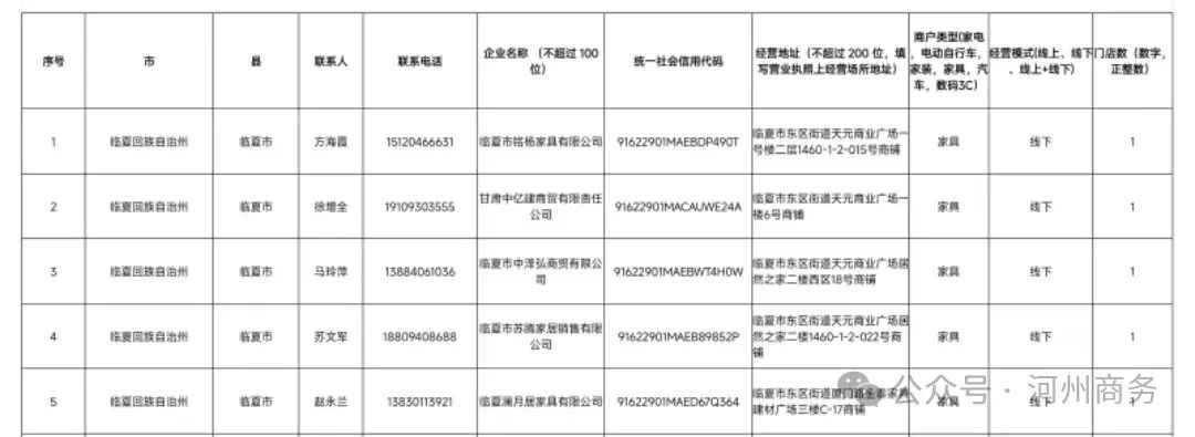 临夏市消费品以旧换新补贴实施家具企业名录(第三批)
