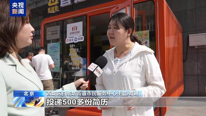 北京市西城区白纸坊街道市民服务中心主管 奇琳:第一次直播已经达到30万的观看量了,投递简历500多份,平时我们办一个招聘会可能投递简历最多也就有100多份。
