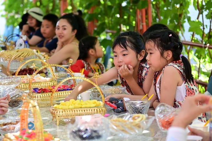 游客在新疆伊犁哈萨克自治州伊宁市伊犁老城喀赞其文化旅游区家访点品尝当地美食(7月23日摄)。新华社记者 丁磊 摄