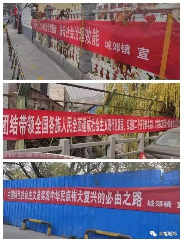 在氛围营造上下细功夫,提升“宣”的效果。 党的二十大是在全面建设社会主义现代化国家新征程的关键时期召开的一次十分重要的大会。城郊镇高度重视,积极通过制作宣传横幅,播放LED电子显示屏,并结合当前镇村干部入户走访的有利时机,向广大党员群众广泛宣传党的二十大精神,有效营造了全镇上下全力学习贯彻党的二十大精神的浓厚氛围,促进了党的二十大精神真正家喻户晓,深入百姓心中。