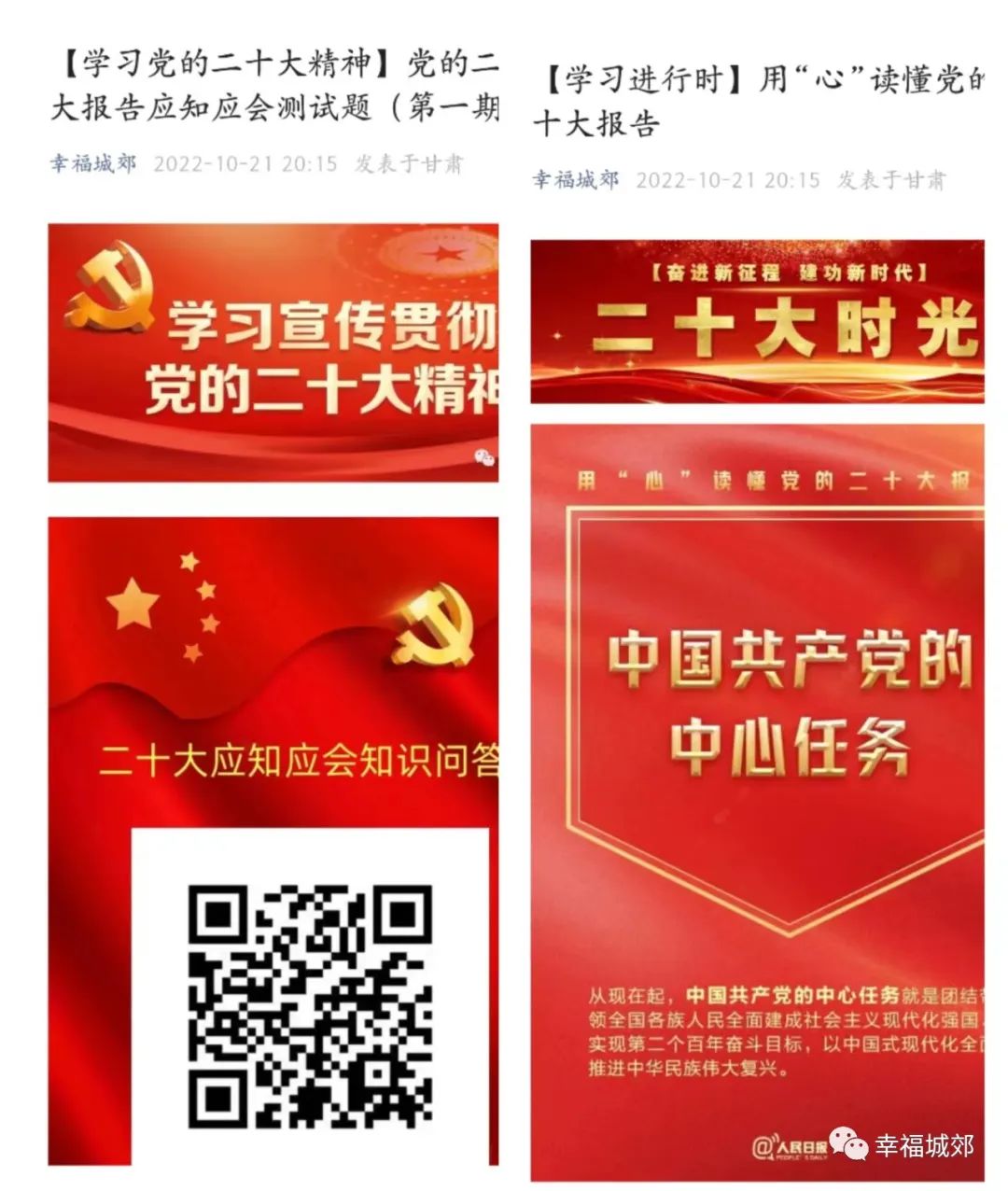 党的二十大报告在我镇引起强烈反响,各村迅速掀起学习党的二十大精神的热潮。为深入学习宣传贯彻党的二十大精神,城郊镇着力在“学、讲、宣”上下功夫,突出抓好学习宣传贯彻的质量和成效,有效凝聚起了全镇上下齐心协力推动高质量发展的强大合力。