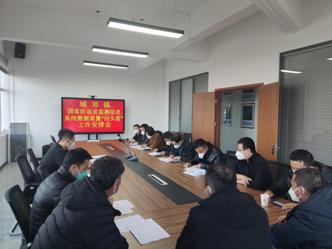 11月26日上午,城郊镇组织召开国家防返贫监测信息系统数据质量“回头看”工作安排会,镇乡村振兴站及全体驻村工作队参加会议。