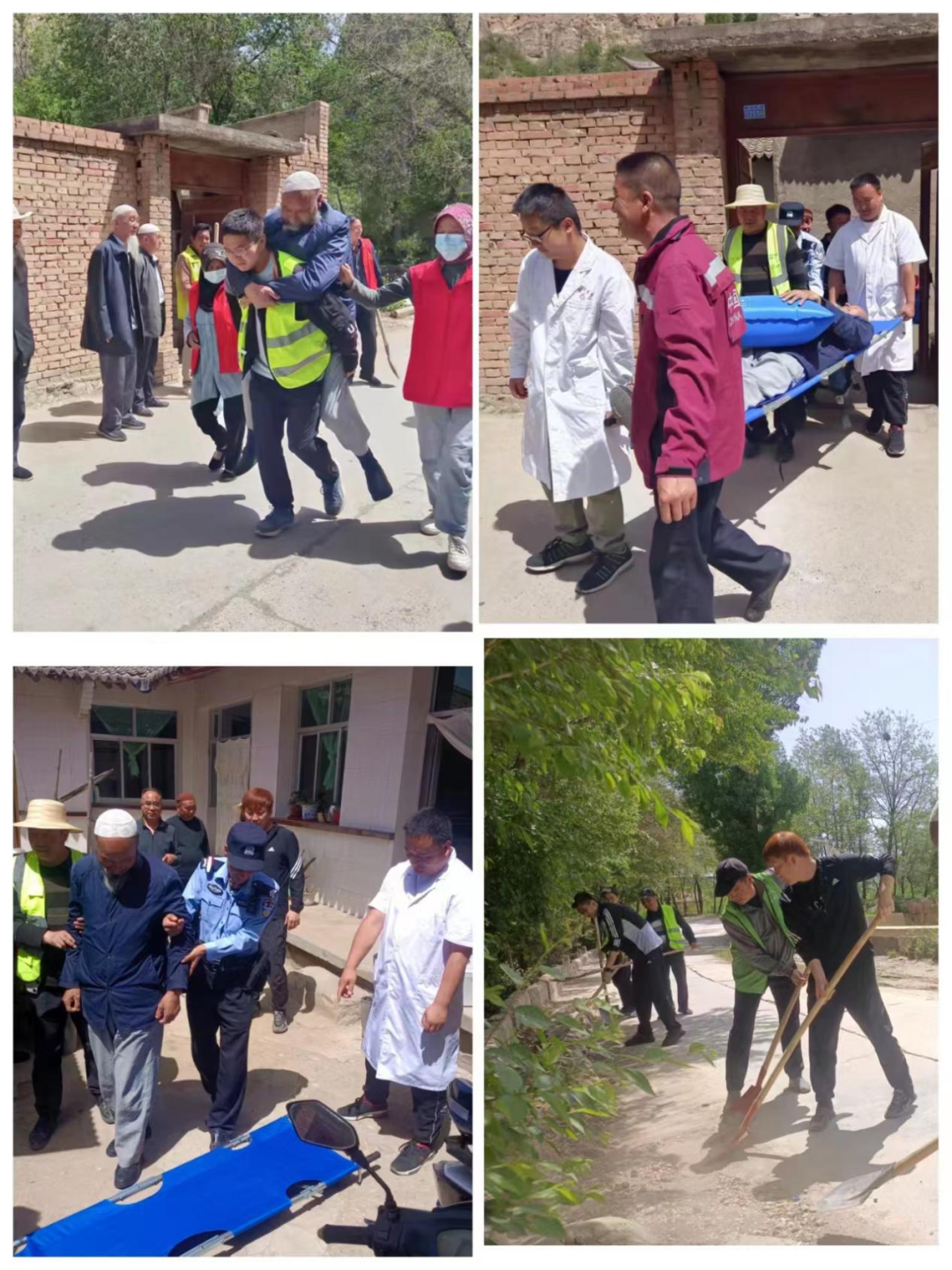 此次演练模拟情景为堡子村北山段发生特大暴雨导致山体滑坡和泥石流,致使北山沿线群众被困,威胁群众的生命和财产安全,急需开展群众避险转移和抢险救灾等工作为背景,采取模拟实战状态,通过信息播报、避险转移、解救被困人员等场景完成演练。在接到险情通知后,第一时间根据突发地质灾害应急预案启动应急响应,随着总指挥演练“开始”一声令下,信息联络预警组、应急抢险组、交通治安管理组、抢险物资运输组、医疗卫生组、转移安置组,5个救援功能小组按照命令迅速出动,奔赴现场。通过敲锣、报警器、呼喊等多种方式发出防汛预警,拉响警报,迅速组织群众进行紧急避险转移、救援被困群众、全力救治受伤人员,对地质灾害隐患点进行抢险处理,开展安全隐患排查巡逻,各救援小组各司其职、密切配合、联动高效,整个过程指挥有力、调度有方、贴近实战。