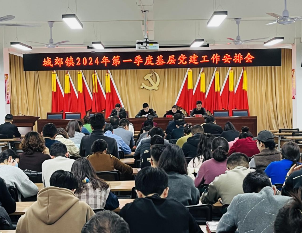 1月9日上午,城郊镇召开2024年第一季度基层党建重点工作安排会,全体班子成员、镇村干部和镇属各党支部书记、副书记、党务工作者、第一书记参加会议。