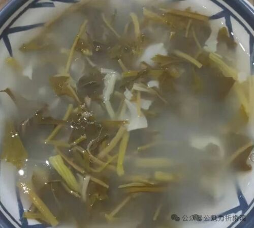 浆水,是刻在临夏人骨子里的美食,事实上,它也是一道历史悠久的汉族传统名菜。浆水制作很简单,一般选用鲜嫩的苦苣、苜蓿、荠荠菜等野菜或芹菜、胡萝卜菜、小白菜叶为原料,切成细条,煮熟后加上发酵引子,盛在瓷罐内盖好三天后即成。