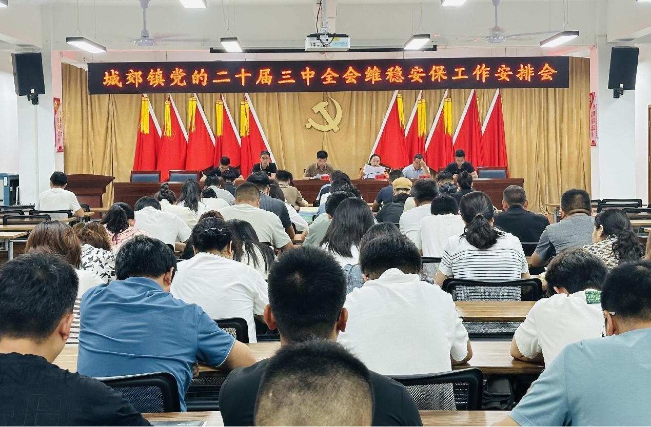 为扎实做好党的二十届三中全会期间维稳安保工作,营造和谐安全稳定的良好社会局面,7月16日,城郊镇组织召开党的二十届三中全会维稳安保工作安排会。镇全体班子成员,各村(社区)党支部书记和全体镇村干部参加会议。