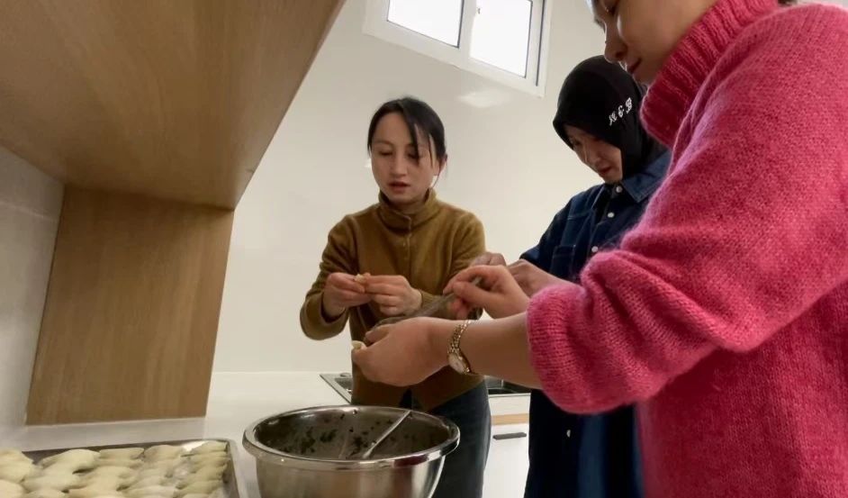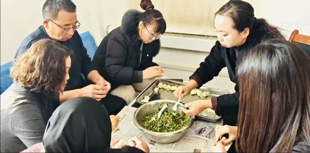 窗外寒风凛冽,室内却洋溢着欢声笑语。各村(社区)提前准备好了包饺子的食材,参加活动的群众与干部们分工有序,配合默契。有人和面,手法娴熟,面团在手中逐渐变得光滑有弹性;有人剁馅,节奏明快,各类食材化为细碎美味;有人擀皮,动作利落,一张张“团圆”饺子皮完美诞生,在一双双巧手下,一张张饺子皮变成一个个圆滚滚的饺子,活动现场俨然变成了“欢乐大厨房”,充满着“家”的味道和温暖。