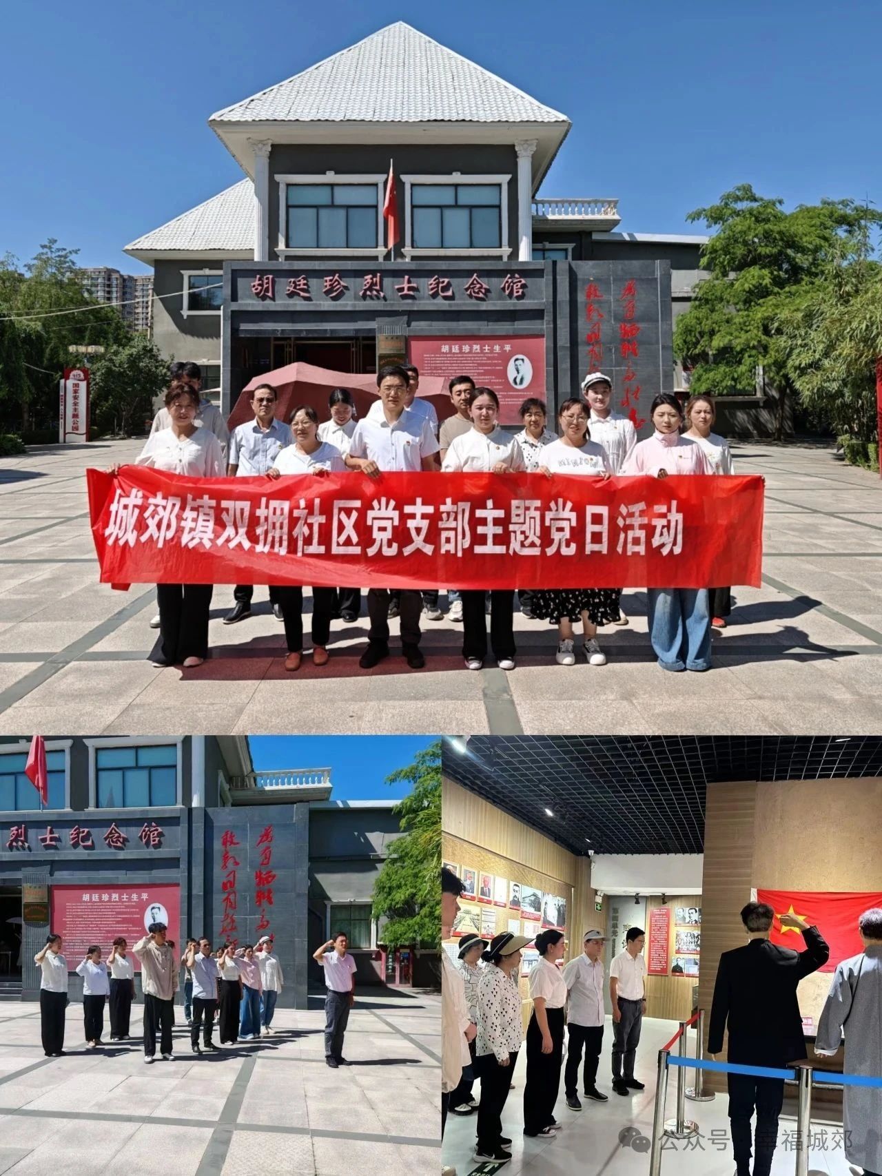 城郊镇双拥社区党支部开展“追寻先烈足迹,永葆入党初心”主题党日活动,支部党员赴胡廷珍烈士纪念馆参观学习,重温入党誓词,参观见学,聆听讲解,在红色足迹中感悟初心使命,凝聚起服务群众的强大合力。