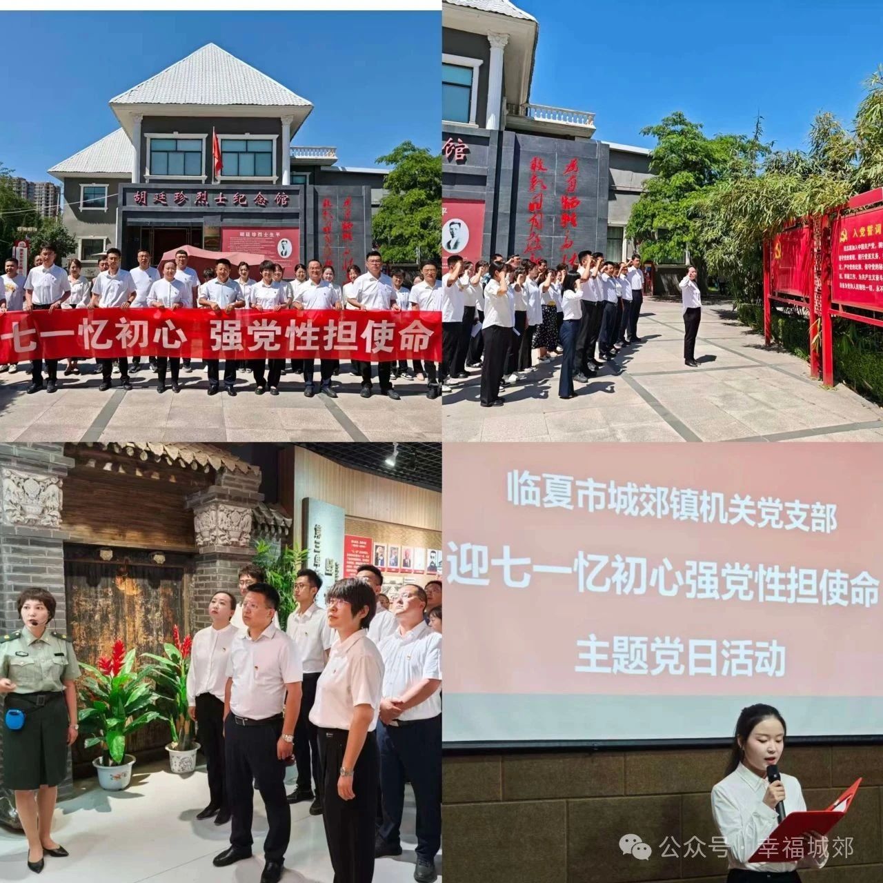 为迎接中国共产党成立104周年,进一步锤炼机关党组织的凝聚力、组织力和战斗力,激励广大党员赓续精神血脉、矢志实干笃行,以更昂扬的斗志、更过硬的作风、更扎实的行动奋力书写城郊镇各项工作高质量发展的答卷。6月27日,城郊镇机关党支部开展“迎七一忆初心,强党性担使命”主题党日活动,组织党员干部参观胡廷珍烈士纪念馆,并举办“我想对党说句心里话”朗诵活动。通过“实地参观+理论学习”的方式,推动红色教育与基层治理深度融合,为党员干部注入“红色基因”。