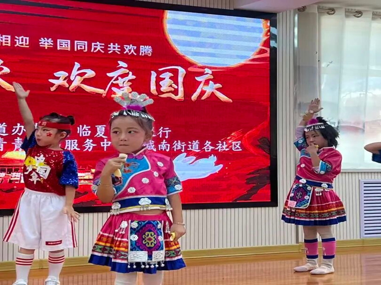 文艺表演环节精彩纷呈,生动勾勒出“老有所乐、幼有所学” 的社区治理画卷。城南街道老年大学学员精神矍铄,以饱满热情呈现系列精彩节目:军乐合奏《歌唱祖国》《强军战歌》气势恢宏,用激昂旋律奏响对祖国的深情礼赞;独舞《五星红旗》舞姿优美、情感真挚,以灵动肢体传递对祖国的无限热爱;集体舞《唱支山歌给党听》热情洋溢,用欢快舞步表达对党和国家的衷心祝福;小合唱《红歌联唱》激昂澎湃,凭经典旋律唤起现场观众的共同记忆。临夏市苗苗幼儿园的小朋友天真烂漫,带来活力满满的集体舞《中国龙》《名字叫中国》《哒哒舞》等节目,赢得大家阵阵掌声,欢声笑语持续回荡在现场。