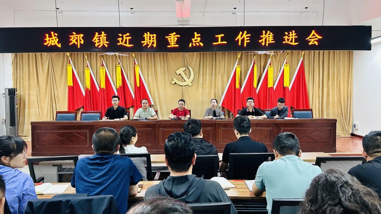 为进一步明确工作方向,确保各项重点工作高效有序推进。5月20日,城郊镇召开近期重点工作推进会。镇班子成员、各村(社区)“两委”、驻村工作队长及全体镇村干部职工参加会议。