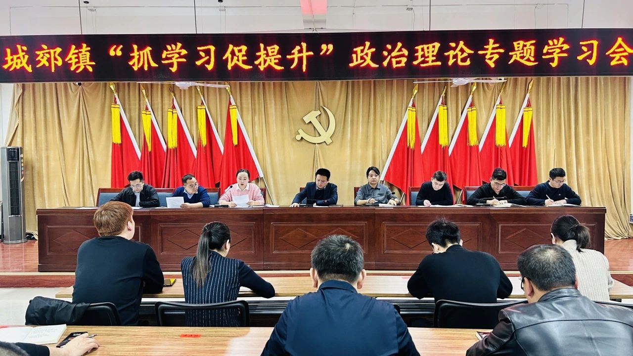 为在全镇掀起学理论、学政策、学先进的热潮,激励全镇上下在比学习,比能力,比贡献中锻炼提升,真正为抓发展、谋发展、促发展贡献城郊力量。3月4日,城郊镇组织召开“抓学习促提升”政治理论专题学习会,会议由镇党委书记主持,镇班子成员、全体镇村干部和各村(社区)书记、副书记、驻村工作队队长参加。