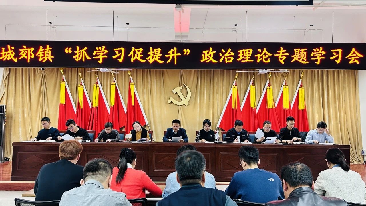 为及时跟进学习习近平总书记最新重要讲话精神,让全镇上下坚持学思用贯通、知信行统一,把习近平新时代中国特色社会主义思想转化为坚定理想、指导实践、推动城郊镇工作高质量发展的强大精神力量。3月11日,城郊镇组织召开“抓学习促提升”政治理论专题学习会,会议由镇党委书记主持,镇班子成员、全体镇村干部和各村(社区)书记、副书记、驻村工作队队长参加。