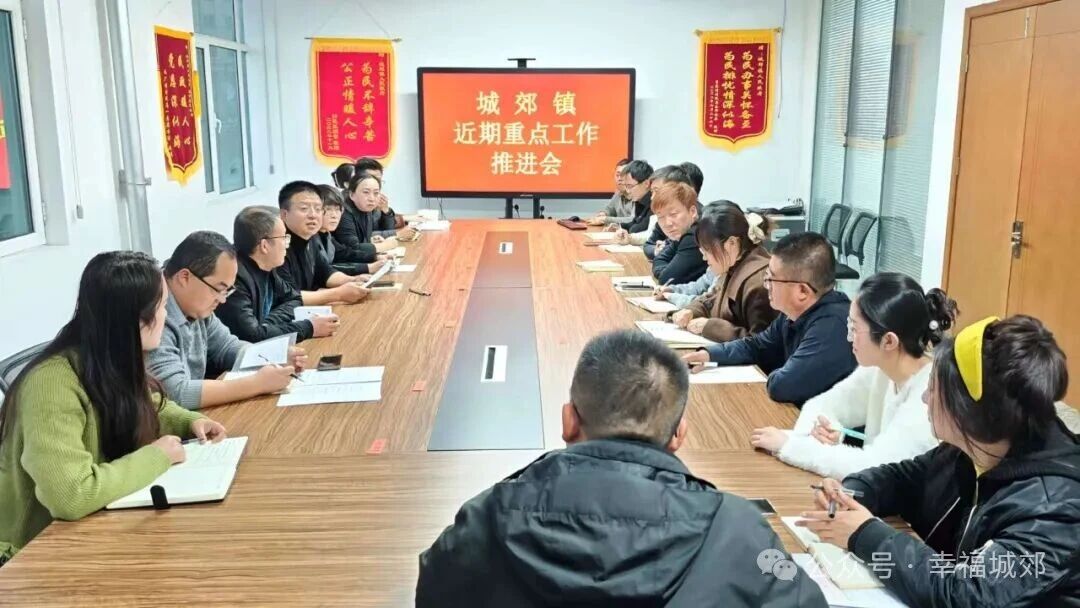 为进一步统一全体镇村干部思想步调、凝聚攻坚合力,持续推动全镇各项重点工作提质增效、高效开展。近日,城郊镇组织召开近期重点工作推进会,全体班子成员、各村(社区)书记和驻村工作队长参加会议。