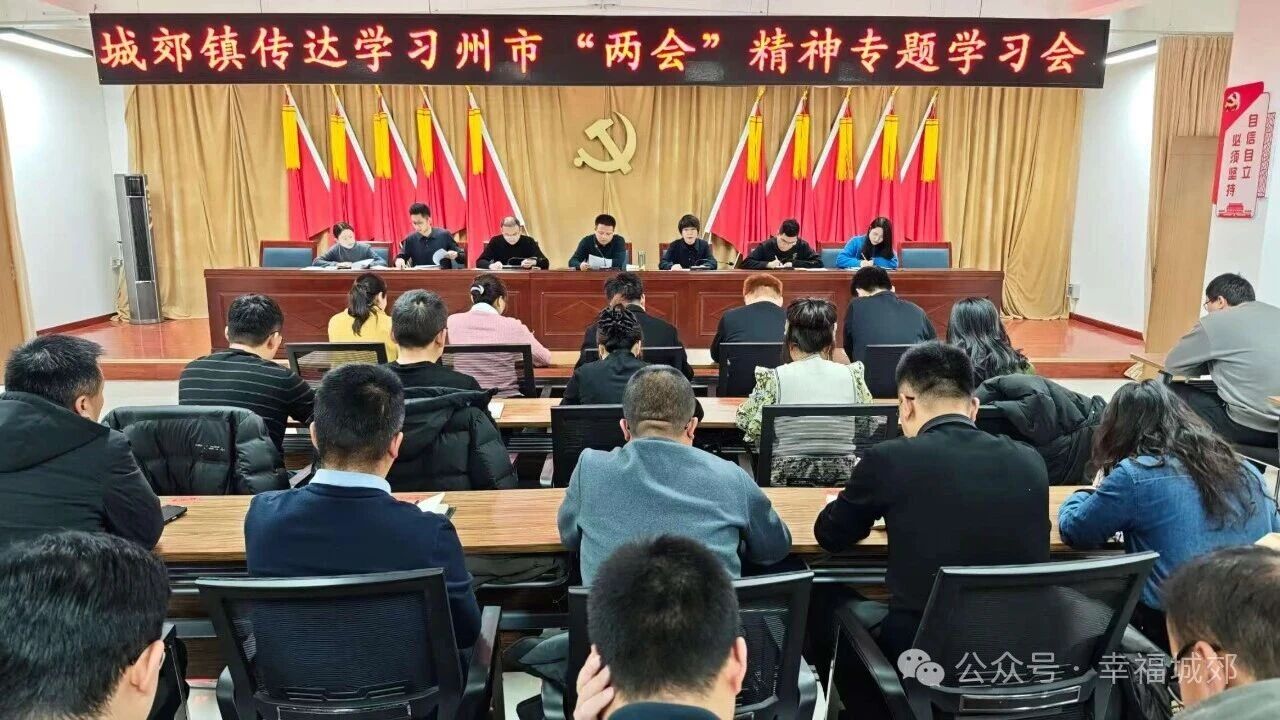 会议要求,一要高站位领会,在学深悟透中把稳前进之舵。全镇上下要坚持把学习贯彻州市“两会”精神作为当前重要政治任务,通过党委理论中心中心组领学、干部自主深学等多种形式,全面把握精神实质与核心要义。要深刻领悟州市战略意图与实践要求,不断增强政治判断力、政治领悟力、政治执行力,切实把学习成果转化为推动发展的清晰思路和坚定行动,凝聚起同心同向、聚力发展的思想共识;二要高标准对标,在服务全局中扛起镇级之责。全镇上下要紧扣“两会”确定的各项目标任务,立足镇村实际,找准贯彻落实的切入点和着力点,统筹推进产业发展、环境整治、治理提升、民生保障等工作,锚定思路,跳起摸高,在主动服务州市发展战略中体现基层担当、贡献城郊力量;三要高质量落实,在实干笃行中夯实发展之基。全镇上下要大力弘扬务实重行、锐意进取的作风,牢固树立“抓落实就是抓发展”的理念,对定下的事情紧盯不放、一抓到底,要严守纪律规矩,保持清正廉洁,以“走在前、勇争先、善作为”的奋斗姿态,全力推动州市各项工作安排在城郊镇落地见效,奋力谱写高质量发展新篇章。