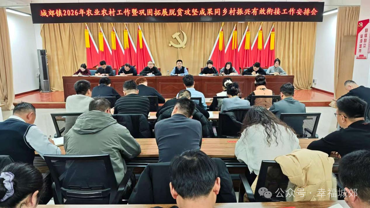 为巩固拓展脱贫攻坚成果同乡村振兴有效衔接,深入推进乡村振兴战略,确保圆满完成2026年各项工作任务。近日,城郊镇召开2026年农业农村工作暨巩固拓展脱贫攻坚成果同乡村振兴有效衔接工作安排会,镇全体班子成员、机关干部、各村书记及驻村工作队员参加会议。