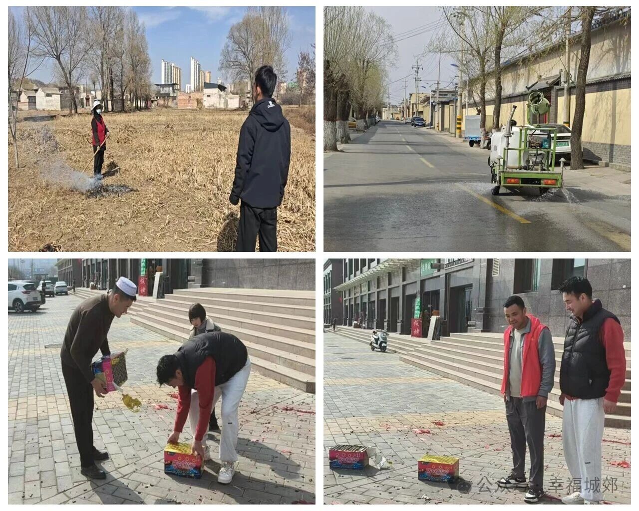 联防联控,巩固生态治理成效。在严控“四烧”的同时,同步推进烟花爆竹禁放管控工作,与禁烧工作统筹兼顾、一体推进,组织专人开展全域、全时段巡查,建立快速响应、高效处置机制,严防违规燃放行为,减少大气污染源。同步开展洒水降尘作业,根据天气变化灵活调整洒水频次和覆盖范围,有效抑制空气扬尘,持续改善辖区空气质量,严守生态环保底线。