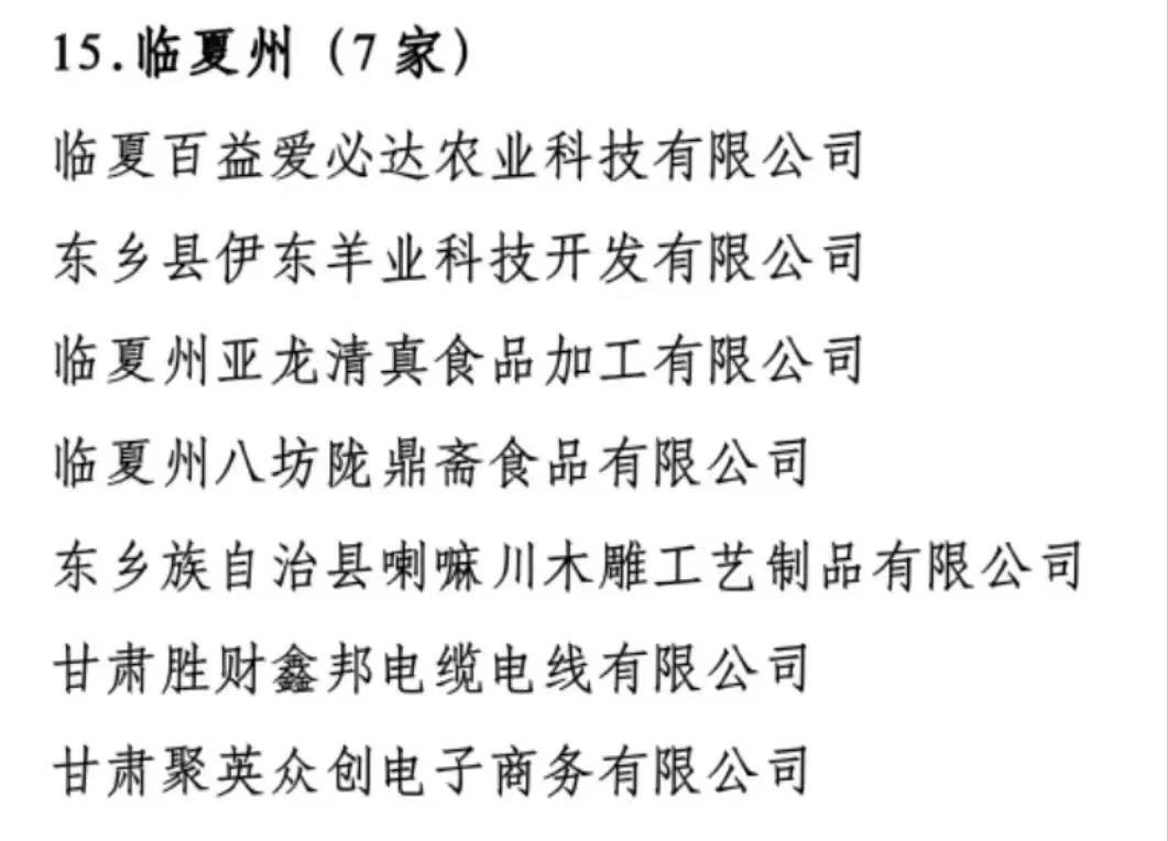 2024年度第二批甘肃省科技创新型企业名单(临夏州)