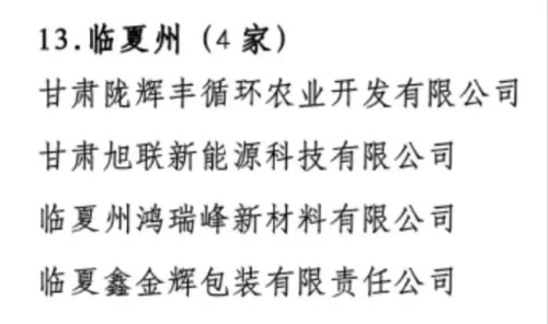 2024年度第三批甘肃省科技创新型企业名单(临夏州)