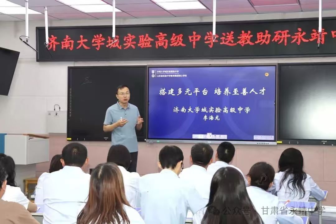 6月13—14日,济南大学城实验高级中学副校长赵百杰带领8名骨干教师在甘肃省永靖中学开展送教助研活动,并召开了帮扶工作座谈会。