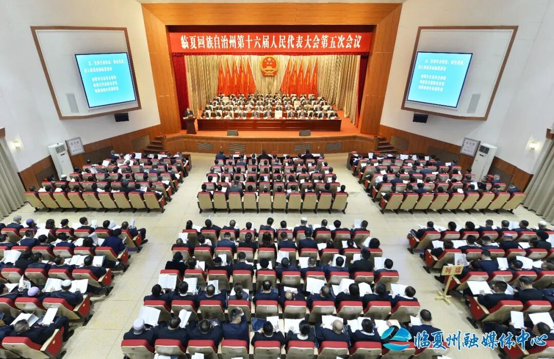 上午9时,大会主持人宣布:临夏回族自治州第十六届人民代表大会第五次会议开幕。全体起立,奏唱国歌。