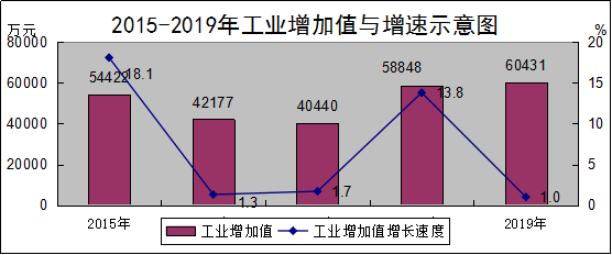 全部工业企业实现增加值60431万元,比上年增长1.0%。其中:规模以上工业企业实现增加值46380万元,比上年增长1.2%。按经济类型分,国有控股企业实现增加值30196万元,增长15.4%;股份制企业实现增加值42797万元,增长0.9%;私营企业完成增加值15758万元,下降20.7%。按轻重工业分,轻工业实现增加值13551万元,下降24.5%;重工业实现增加值32829万元,增长14.4%。