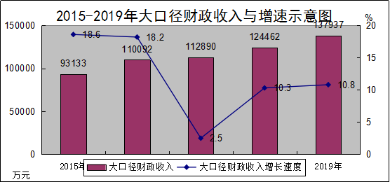 财政税收:全年完成大口径财政收入137937万元,比上年增长10.8%。其中:一般公共预算收入完成50766万元,增长1.4%。全年一般公共预算支出288883万元,比上年增长12.2%。其中:一般公共服务支出34514万元,增长17.2%。税收收入38446万元,比上年增长0.3%;非税收入12320万元,增长4.9%。