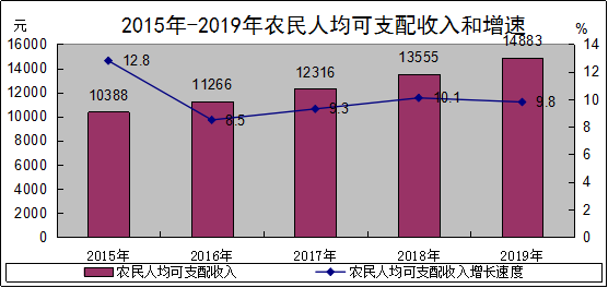 农民人均可支配收入14883元,净增1328元,增长9.8%。农民人均生活消费支出12652元,净增827元,增长7.0%。农村居民恩格尔系数31.0%。
