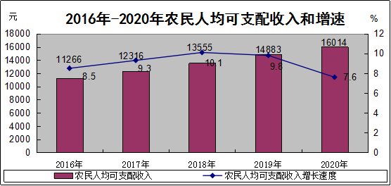 农民人均可支配收入16014元,净增1131元,增长7.6%。农民人均生活消费支出13280元,净增628元,增长5.0%。农村居民恩格尔系数31.5%。
