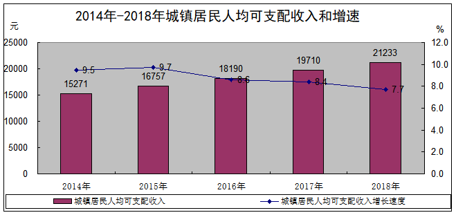 人民生活:城镇居民人均可支配收入21247元,净增1537元,增长7.8%。城市居民人均消费支出16755元,净增117元,增长0.7%。城镇居民恩格尔系数32.7%。