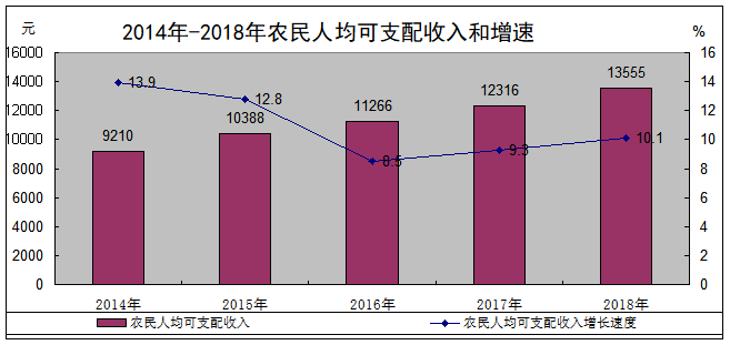 农民人均可支配收入13555元,净增1239元,增长10.1%。农民人均生活消费支出11825元,净增1622元,增长15.9%。农村居民恩格尔系数31.8%。