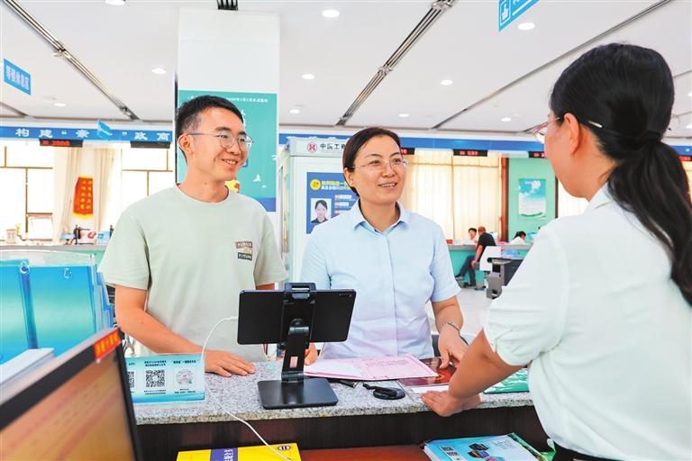 金塔县政务服务中心的工作人员给群众办理相关业务。(通讯员曹红祖)