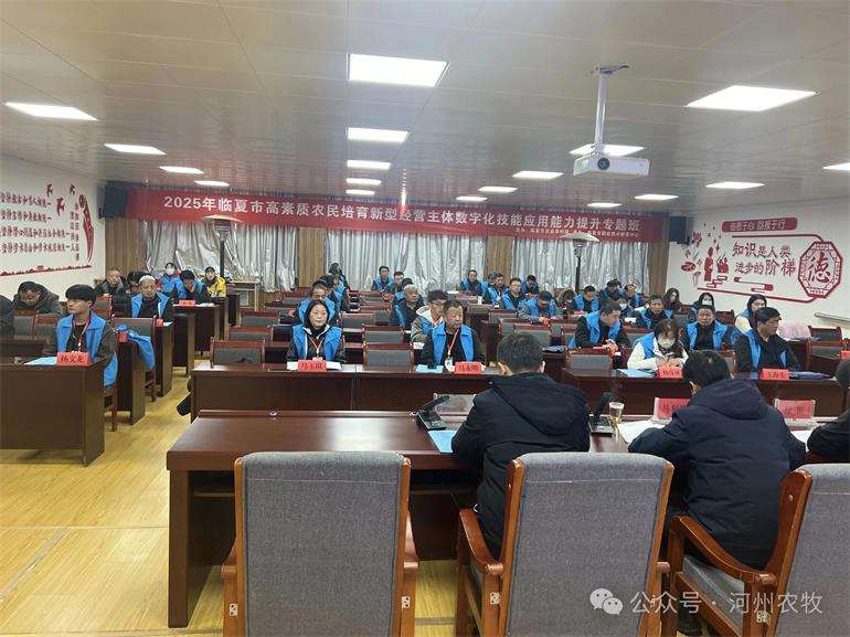 为深入贯彻落实乡村人才振兴战略,切实提升临夏市农业产业数字化应用能力水平,12月15日,临夏市高素质农民培育新型经营主体数字化技能应用能力提升专题班在临夏市职业教育中心开班。市农业农村局分管领导、市职教中心相关负责人,市农业农村局相关股室及来自全市合作社、家庭农场、农牧企业从事(正在从事或有意愿从事)农业生产领域的40名农民群众参加开班仪式。