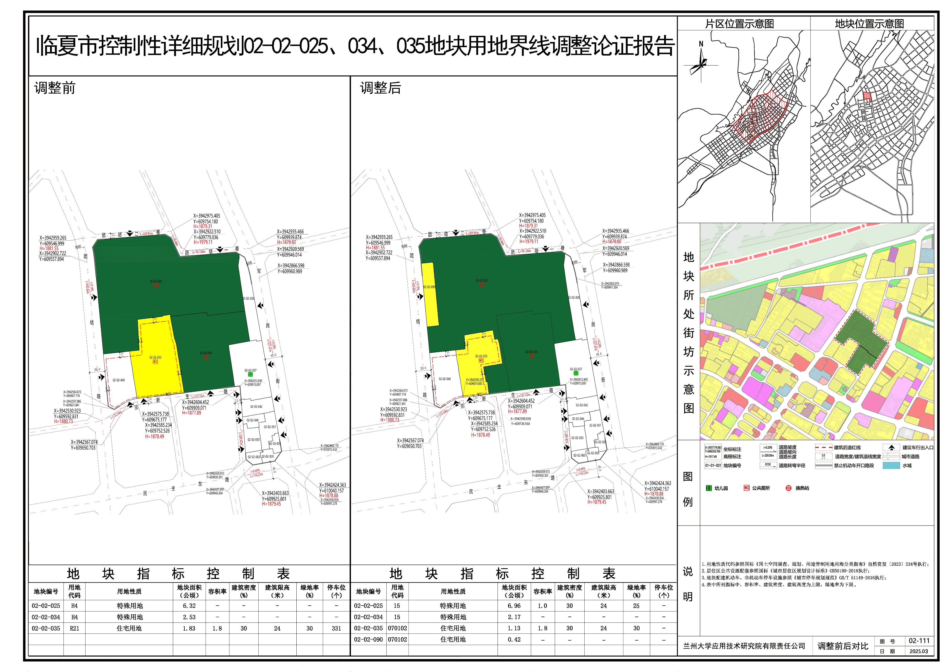 本次论证地块位于临夏市团结北路东侧,军民街西侧,团结巷南侧,新生路北侧。位于《临夏市控制性详细规划》02单元内,地块分别为02-02-025:规划用地性质为特殊用地,规划用地面积63225.47平方米;02-02-034:规划用地性质为特殊用地,规划用地面积25309.64平方米;02-02-035:规划用地性质为住宅用地,规划用地面积18341平方米。