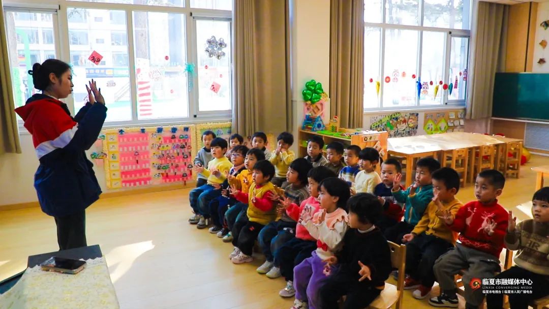 在临夏市团结北路幼儿园(学前教育中心),全新建设的教学楼明亮温暖,教室布置充满童趣。