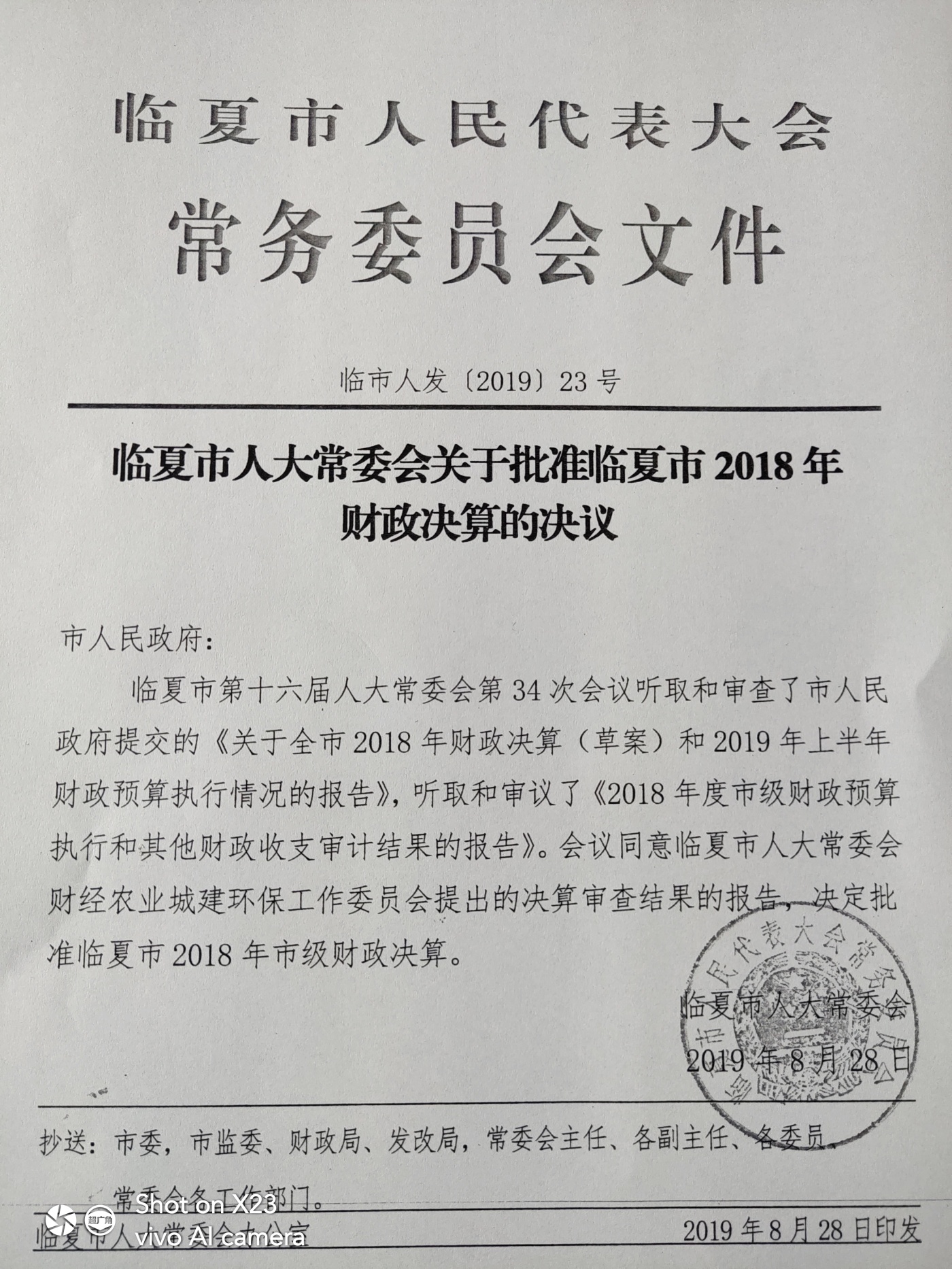 2、临夏市第十七届人民代表大会常务委员会关于批准临夏市2022年财政决算的决议.pdf