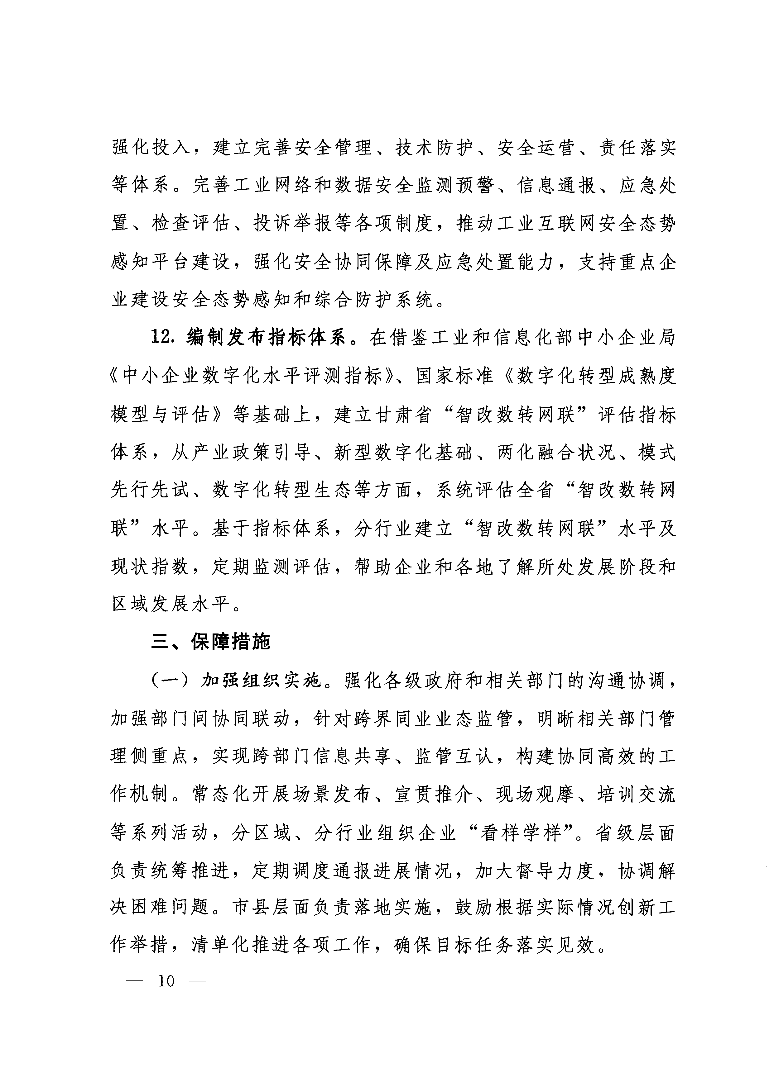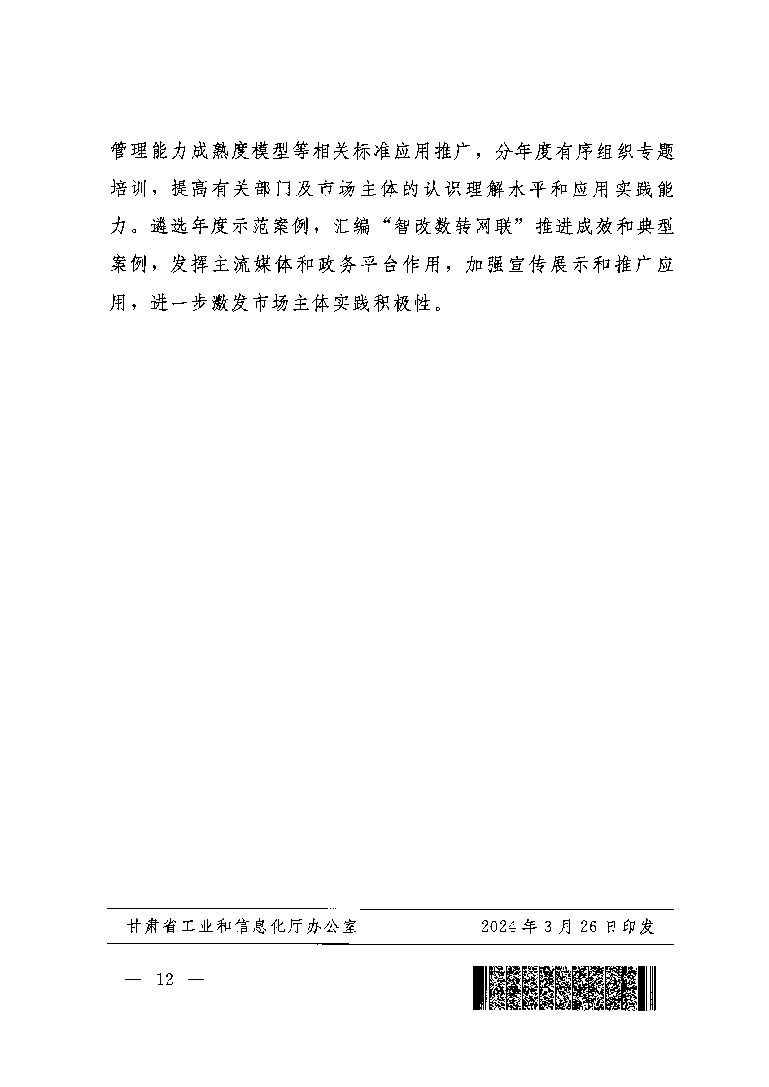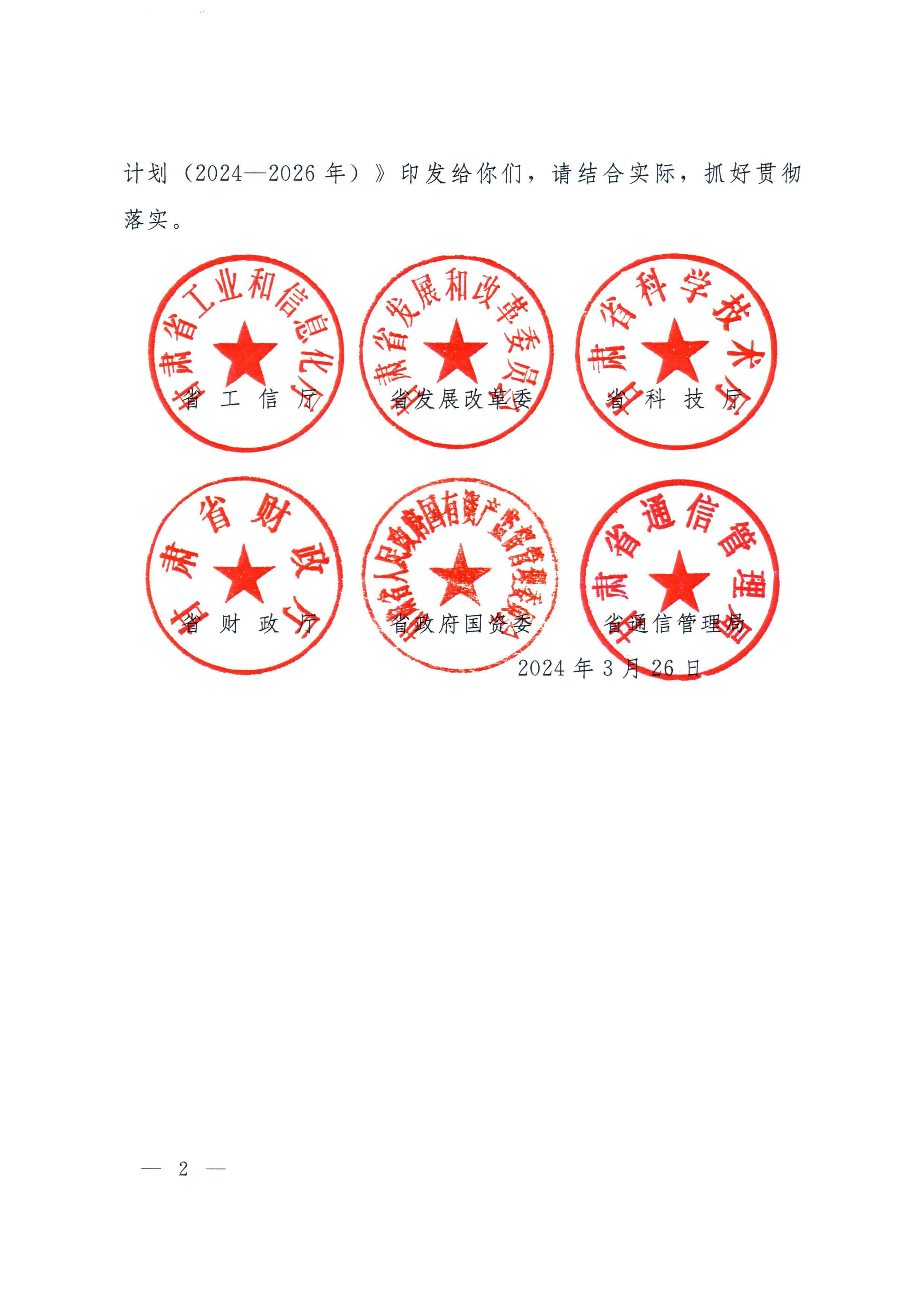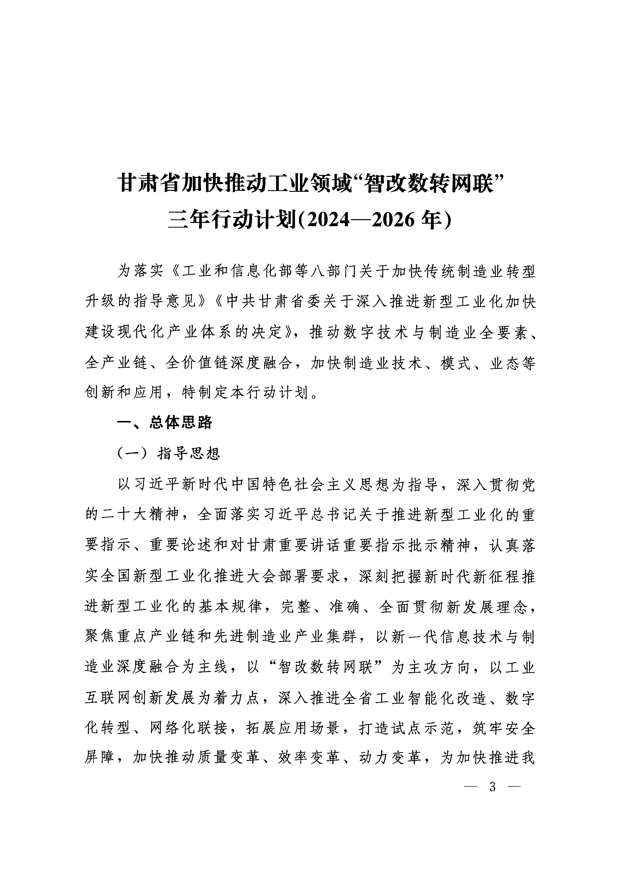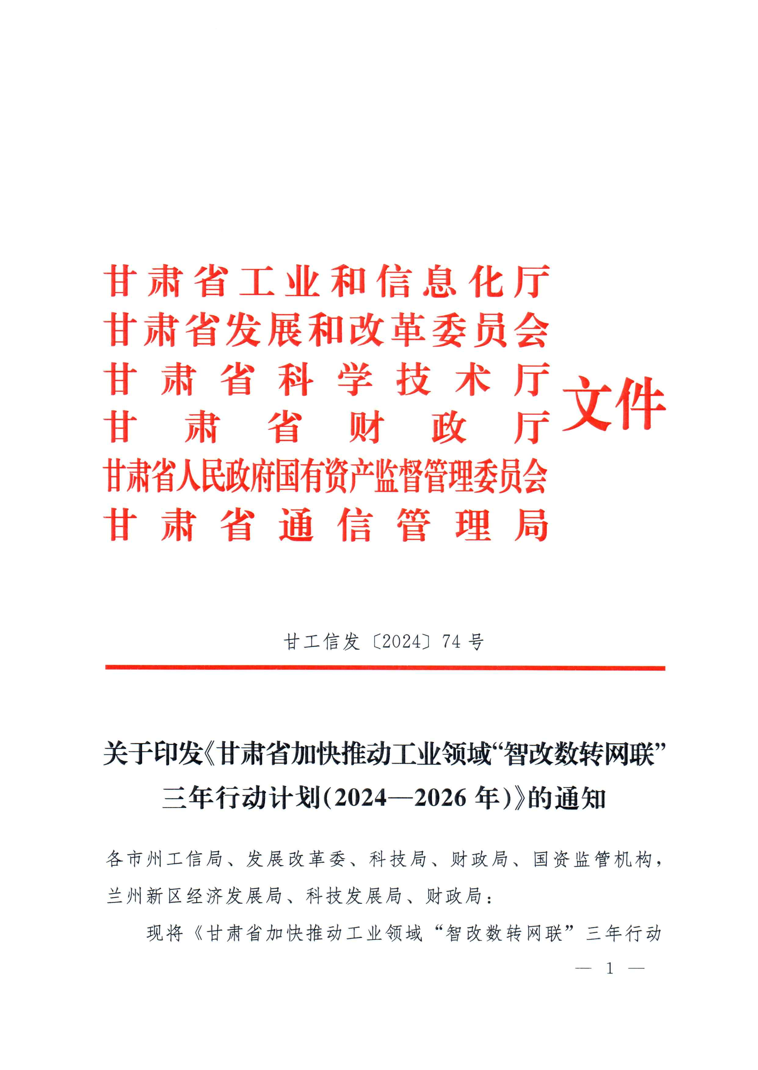 关于印发《甘肃省加快推动工业领域“智改数转网联”三年行动计划(2024-2026)年》的通知