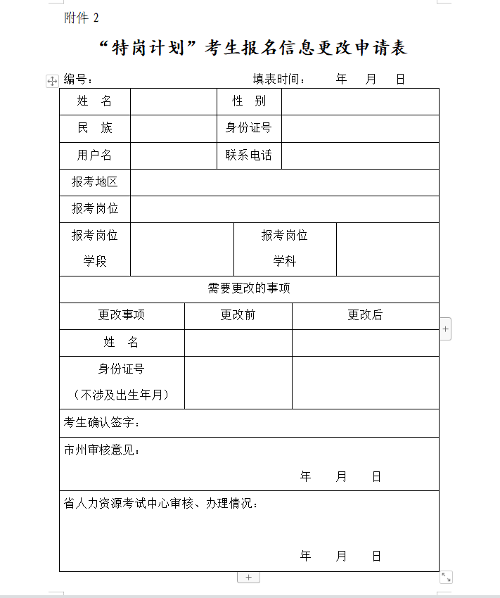 2.“特岗计划”考生报名信息更改申请表