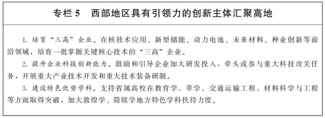 (三)着力建设西部地区具有引领力的创新主体汇聚高地。