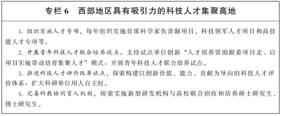 (四)全力建设西部地区具有吸引力的科技人才集聚高地。