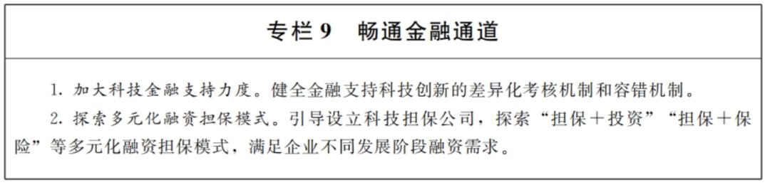 22.加大科技金融支持力度。健全多层次科技金融服务体系,加强支持资本投早、投小、投长期、投硬科技的政策供给。引导银行业金融机构加大科技信贷规模,针对科技创新规律和科技型企业特点,完善差异化的授信审批、风险管控、考核激励等措施。鼓励金融机构设立科技支行、科技担保公司,组建专业化科技金融团队,开发知识产权质押担保、股权质押担保等金融产品。(责任单位:省委金融办、省科技厅、省发展改革委、省工信厅、省财政厅、人行甘肃省分行、甘肃金融监管局)
