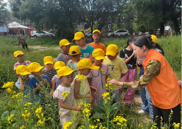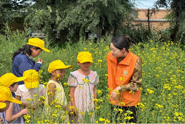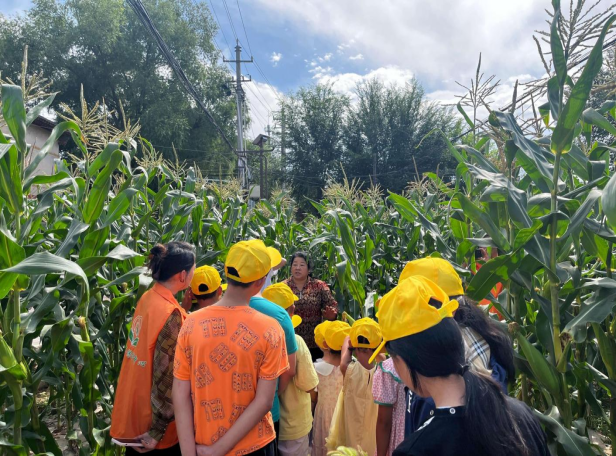 活动中,社工还为孩子们开展了一场生动的农作物知识小课堂。带领孩子们走进油菜花田,结合田间真实的油菜花植株,详细介绍其生长过程,从种子萌发、茎叶生长到开花结籽的各个阶段,并讲解了油菜花的多重作用,如观赏价值、作为油料作物的经济价值等,让孩子们全面认识油菜花。在玉米地里,工作人员还邀请村民到场,由村民结合自身经验,详细解释了玉米的种植技巧、从幼苗到成熟的生长过程以及收割的方法,过程中社工在旁协助,及时为孩子们答疑解惑,解答他们关于作物生长的各种疑问;最后,社工和村民结合讲解内容,向孩子们讲述农民耕作的辛劳与不易,引导他们理解“一粥一饭,当思来处不易”,树立爱惜粮食、尊重劳动的意识。