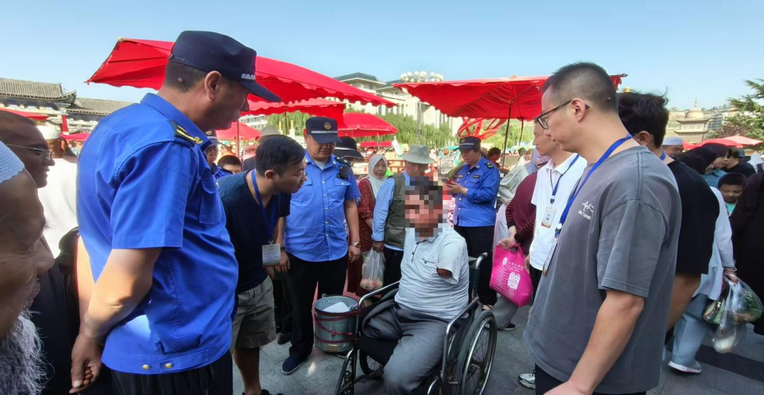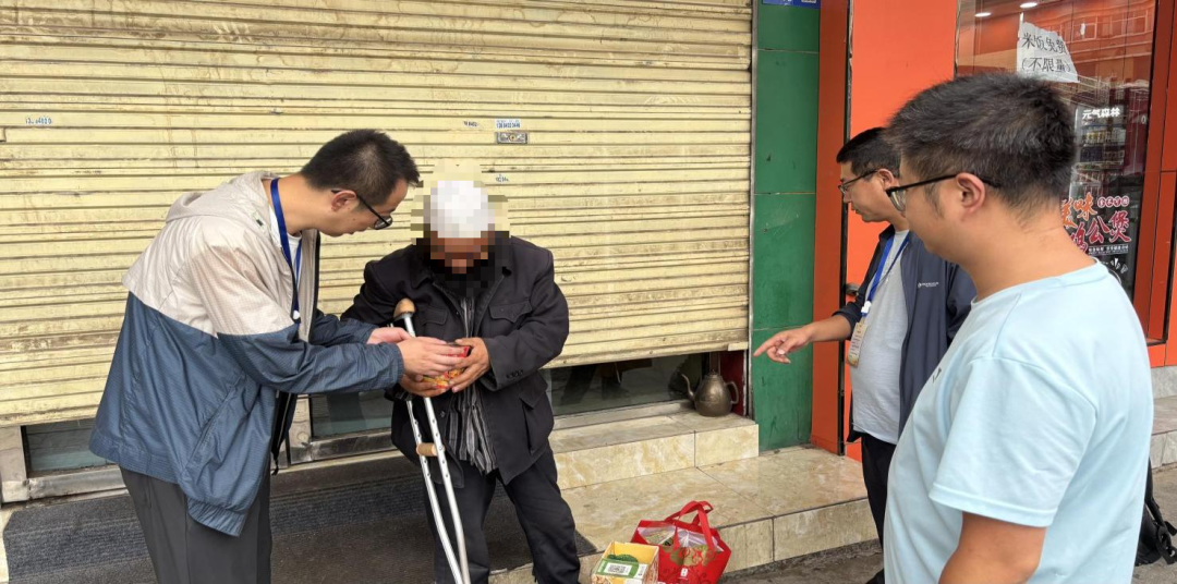 耐心破 “戒备心”,温情赢取信任。巡查途中,一名来自庆阳市镇原县的流浪人员引起工作人员注意,他双上肢及右腿均有残缺,在景区内艰难挪动,身上衣物破旧不堪。考虑到其特殊身体状况与强烈的戒备心理,党员带队的救助小组并未急于开展救助,而是先递上饮用水与食物,通过两次温和耐心的交流,逐步拉近与他的距离、消除其顾虑。最终,在联合城管部门的悉心劝导下,这份真诚与耐心成功打动对方,他主动同意入站接受救助。