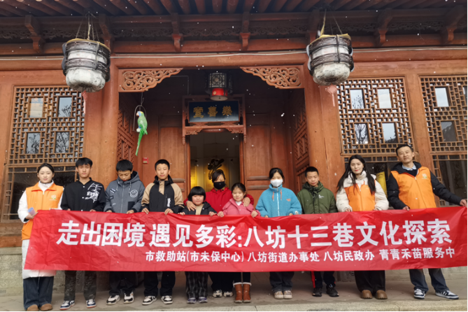 | 标 题 | 八坊民政办公室联合八坊办事处、市救助管理站未保中心共同开展 “走出困境,遇见多彩・八坊十三巷文化探索之旅” 困境儿童团辅活动 | ||