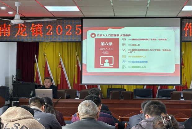为进一步提升南龙镇社会救助工作质量,确保惠民政策精准落地,切实增强困难群众的获得感、幸福感、安全感,近日南龙镇组织召开了2025年民政系统重点业务工作培训会。此次会议由镇分管领导主持,南龙镇民政办公室负责同志担任培训讲师,镇分管领导、民政办全体工作人员以及各村(社区)书记和相关工作人员共计30余人参加。