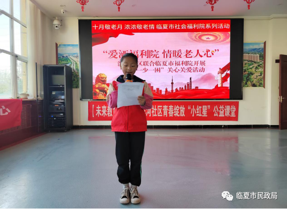 为大力弘扬中华民族尊老、爱老、敬老、助老的传统美德,弘扬社会正气,加强老年人与社会的互动联系,营造爱老助老的良好社会氛围,重阳节前夕,临夏市社会福利院联合南龙镇滨河社区开展了“敬老月”主题活动。