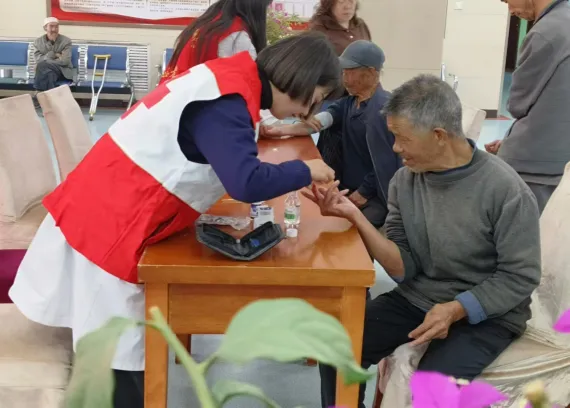 在义诊现场,医疗志愿者们耐心地为每一位老人测量血压、血糖,仔细询问他们的身体状况,并根据检查结果提供个性化的健康建议。福利院的工作人员们则在一旁密切关注着老人们的情绪变化,及时给予安慰和鼓励,确保供养人员们在整个过程中都感受到温暖和关怀。